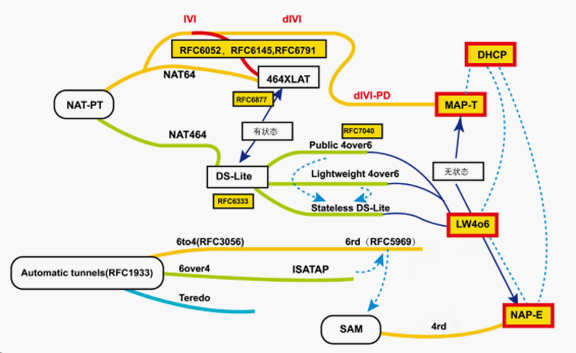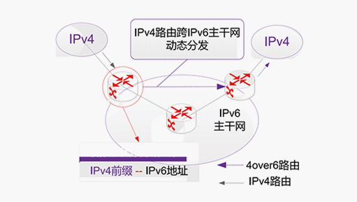 基于核心路由协议的主干网4over6过渡