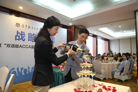 2017年4月15日,高顿财经携手高等教育出版社(上海出版事业部),在长沙市湘城大酒店隆重召开“双语版ACCA富媒体智能教材”出版发布会,填补了国内财会市场尚未出现中英文版本ACCA教材的空白,翻开“双语版富媒体智能教材”建设的第一篇乐章。会议邀请了高等教育出版社(上海出版事业部)主任孔全会女士,高等教育出版社(上海出版事业部)经管文科分社社长刘自挥先生、高顿教育集团联合创始人李珂先生、高顿教育集团ACCA研究院院长龚玲玲博士,及现场几百名财经教育教学权威人士、教授、专家,权威会计学术期刊负责人、企业高管、ACCA教学名师,为大家就“ACCA与高校专业教学的融合”、“双语版ACCA富媒体智能教材”、“如何高效地通过ACCA考试”等话题展开了热烈讨论,财经教学国际化的“思维风暴”。