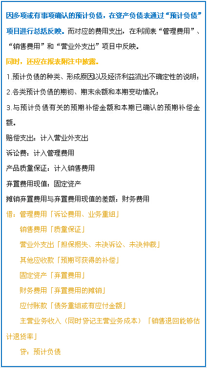 (一)预计负债的列报