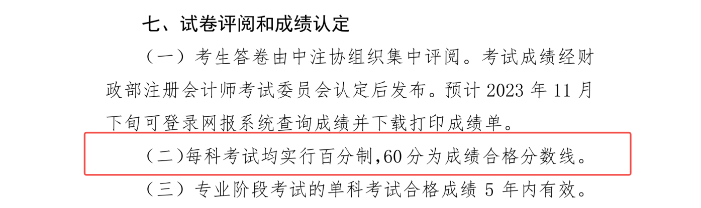 60分。cpa考试分两个阶段,分别为“专业”阶段和“综合”阶段。中注协在cpa考试报名简章中有明确说明:“每科考试均实行百分制,60分为成绩合格分数线”。