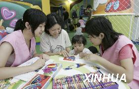 资料图片:2006年7月14日,在上海儿童医学中心的“爱心学校”内,两位上海师范大学的学生正在教一名聋哑儿童绘画。暑假期间,上海师范大学3000多名学生走出校园走向社会,开设130多所“爱心学校”。他们为中小学生上素质教育课,对弱智儿童进行心理辅导,教老年人和下岗工人上网,受到社会各界好评。上海师范大学爱心学校正式成立于1995年,11年来累计举办爱心学校近千所。新华社发(裴鑫摄)