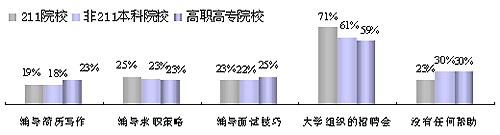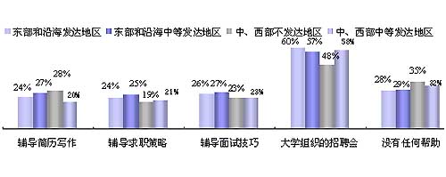 全国无论学校类型、就业地区或城市类型,有20%到30%的2008届大学毕业生没有接受任何求职服务。