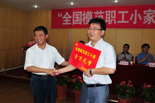 7月27日上午,安徽省属高校首家“全国模范职工小家”授牌仪式在安徽理工大学本部图书馆隆重举行。这是该校电气与信息工程学院继2008年荣获“全国五一劳动奖状”和首届“全国工人先锋号”后,又一次受到全国总工会的表彰。省教育工会主席王昆奇、副主席王兰专程到会祝贺并为电气与信息工程学院授牌、颁奖。校领导张明旭、颜事龙、王洪出席了授牌仪式。