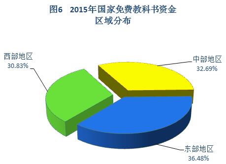 2015年,全国共有5697.90万学生享受地方免费教科书政策,平均覆盖率约41.21%。其中,西部地区2217.49万人,覆盖率为54.02%;中部地区1620.09万人,覆盖率30.73%;东部地区1860.32万人,覆盖率41.80%。