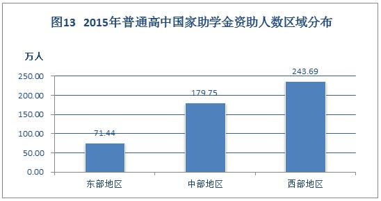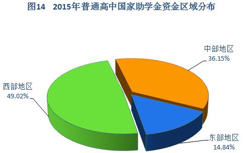 从区域来看,西部地区国家助学金资金48.83亿元,占49.02%;中部地区36.01亿元,占36.15%;东部地区14.78亿元,占14.84%。