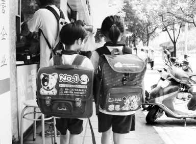 在广州街头,肩背超大书包,“身负重任”的小学生随处可见。李江松摄