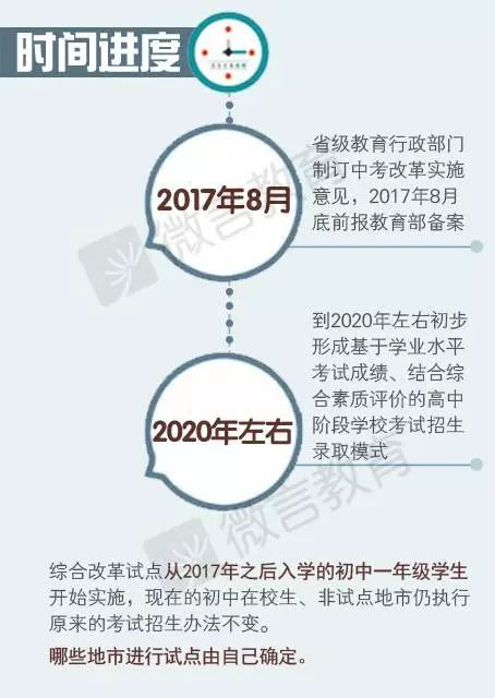 三是综合改革试点从2017年之后入学的初中一年级学生开始实施,现在的初中在校生、非试点地市仍执行原来的考试招生办法不变。哪些地市进行试点由自己确定。