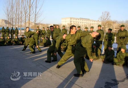 资料图:解放军新兵表演擒拿格斗技巧