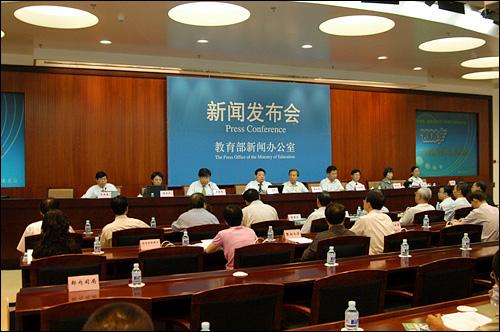 2007年8月16日上午9:30,教育部举行中国语言生活状况报告(2006)新闻发布会,向新闻界介绍“2006年中国语言生活状况报告”有关情况。中国教育网对新闻发布会进行了全程直播,图为发布会现场。