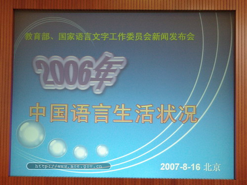 《2006年中国语言生活基本状况》新闻发布会于2007年8月16日上午在教育部新闻发布厅举行