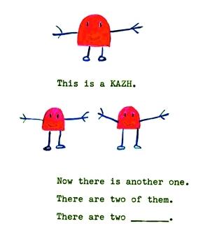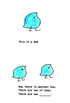 接下来的图则有两只Wug,文字是:Now there is another one. There are two of them. There are two___.
