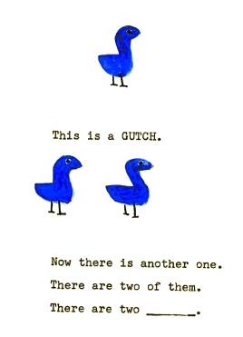 就是在这次著名的试验中,语言学家的神奇动物们悉数亮相。其中最著名的,是形状近似水珠的蓝色小鸟,小嘴尖尖,肚皮滚圆,名叫Wug。因为名气太大,试验都以它的名字命名,叫做Wug测试(Wug Test)。用Wug检验语言能力的方法很简单,就是看图完成一道填空题。