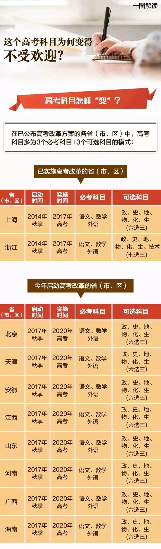 在今年的高考中,浙江、上海两省、市的学生已率先采用“3+3”模式应试,该届学生对于考试科目的选择自然也成为了重要的参考。在众多学生的选择中,一个在往届颇为重要的高考科目,却受到了冷遇……