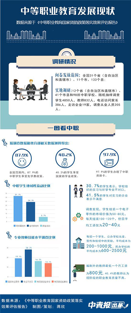 卢迈指出,根据调查结果显示,目前我国中等职业教育国家资助政策整体运行情况良好,资助政策目标基本实现,但仍有部分区域存在突出问题,中职教育改革的痛点仍然没有解决,亟待完善。