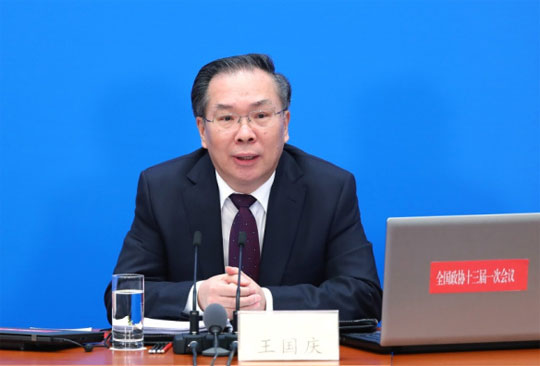 全国政协十三届一次会议新闻发布会于3月2日16:30在人民大会堂一层新闻发布厅召开,大会新闻发言人王国庆向中外媒体介绍本次大会有关情况并回答记者提问。
