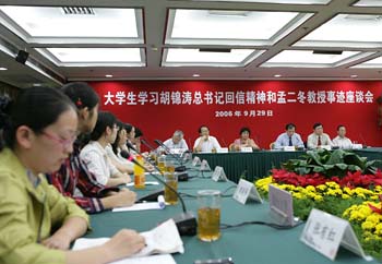 9月6日,新华社播发了胡锦涛总书记给全国模范教师、北京大学孟二冬教授之女孟菲的回信。回信指出,孟二冬教授教书育人,为人师表,把自己有限的生命全部用来报效祖国和人民。在他身上,不仅体现了学识的魅力,而且体现了人格的魅力。回信号召各行各业人们学习孟二冬的崇高精神和优良品德,在全社会引起了强烈反响。