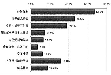 调查显示“获取便利”是选择数字阅读的首要原因,占到67.2%。