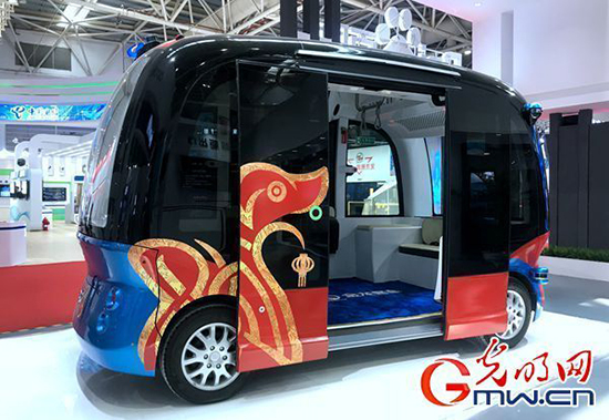 无人巴士亮相展览会数字社会体验馆(李政葳/摄)