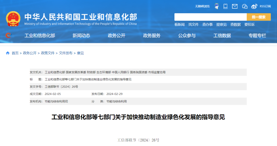 工业和信息化部等七部门关于加快推动制造业绿色化发展的指导意见