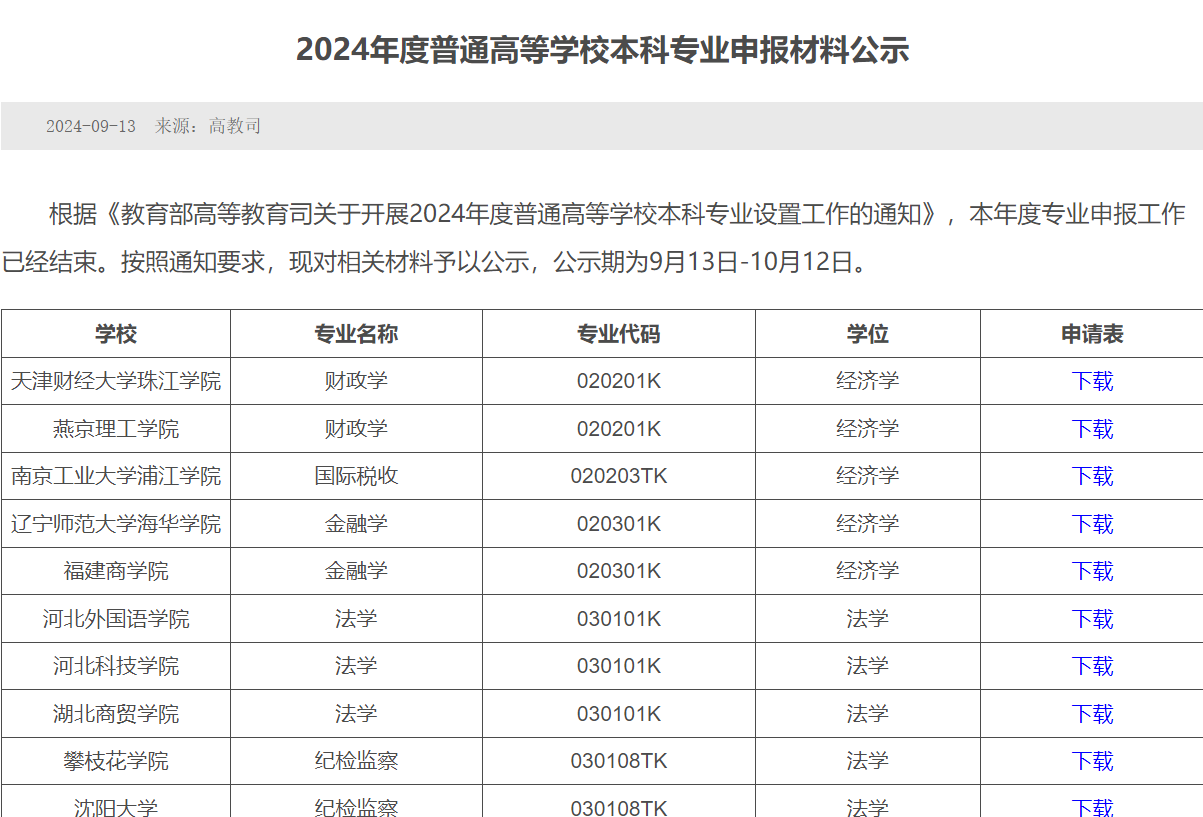 详情点击查看:2024年度普通高等学校本科专业申报材料公示
