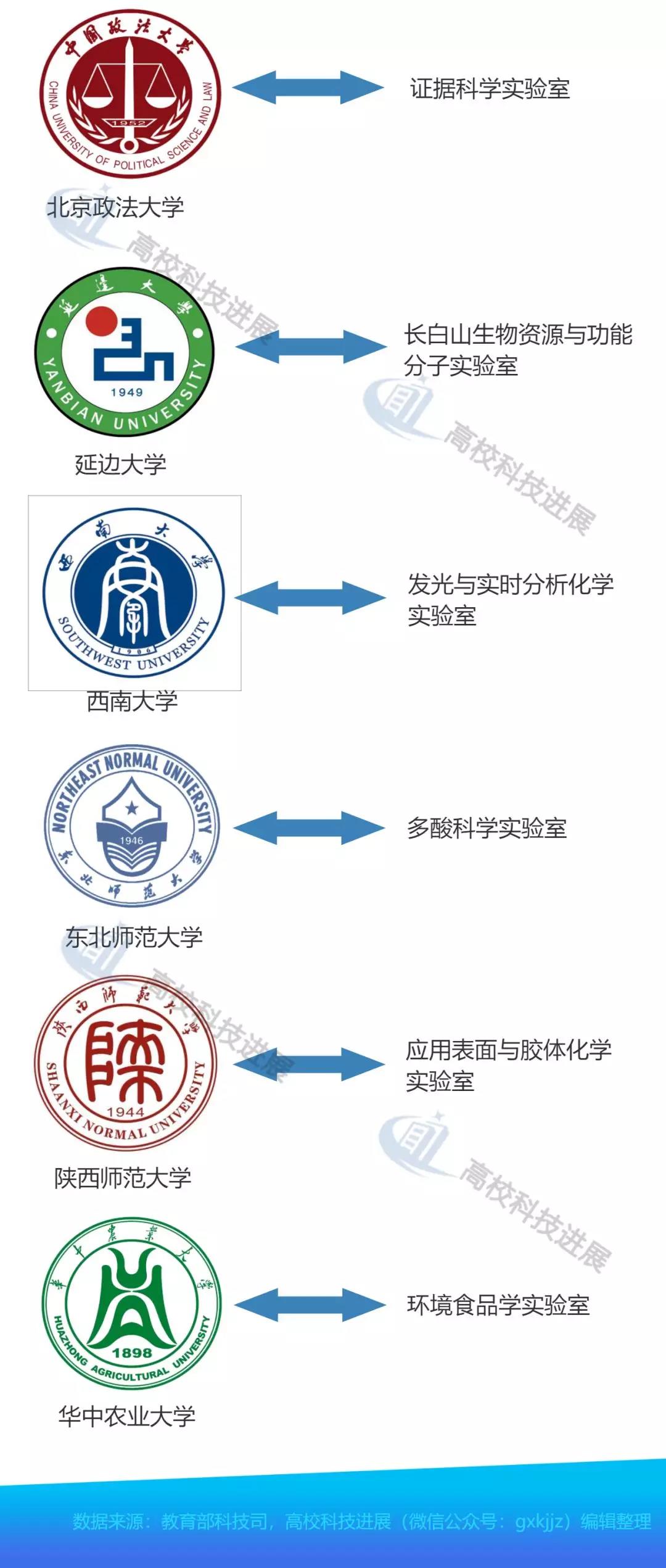 18个实验室的17所依托高校分别是武汉大学、清华大学、南京大学、延边大学、东北师范大学、西南大学、北京师范大学、陕西师范大学、吉林师范大学、湖南科技大学、武汉工程大学、新疆大学、天津师范大学、河北大学、广西师范大学、华中农业大学、中国政法大学。武汉大学共有2个实验室参加综合评议,成为本次进入综合评议环节实验室数量最多的高校。