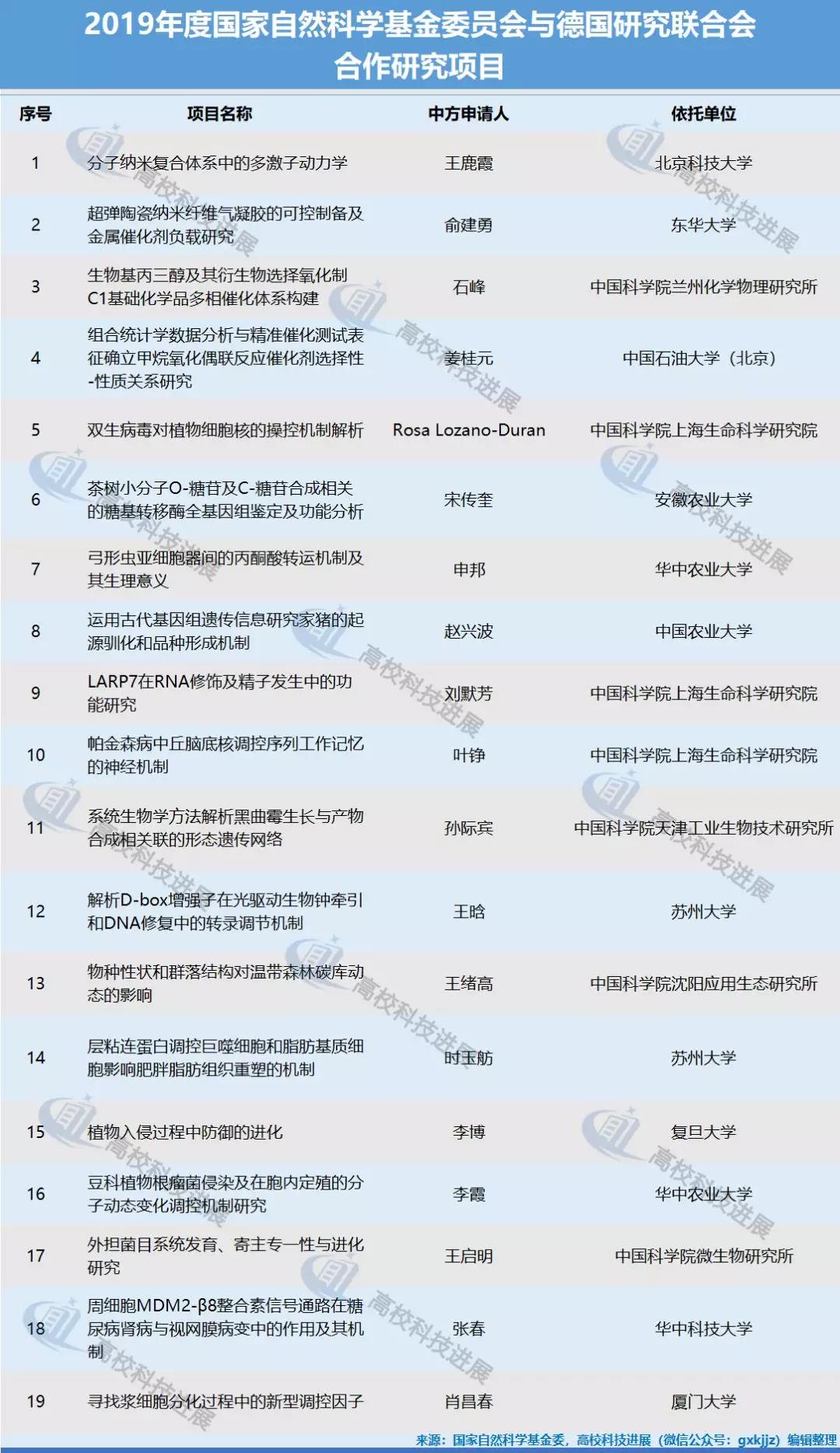 日前,国家自然科学基金委国际合作局印发了《2019年度国家自然科学基金委员会与俄罗斯基础研究基金会合作研究项目批准通知》、《2019年度国家自然科学基金委员会与德国研究联合会合作研究项目批准通知》,正式对外发布2019年度国家自然科学基金委与俄罗斯基础研究基金会、国家自然科学基金委与德国研究联合会合作研究资助项目名单。