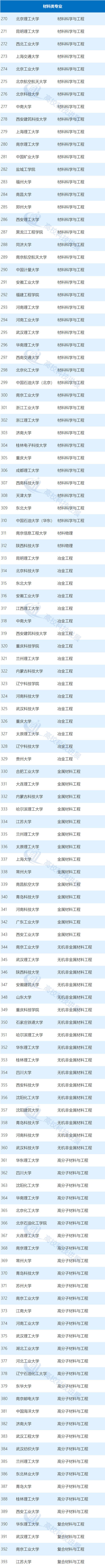 新兴学科专业:环境工程(69所)、材料科学与工程(41所)、材料成型及控制工程(35所)、高分子材料与工程(29所)等。