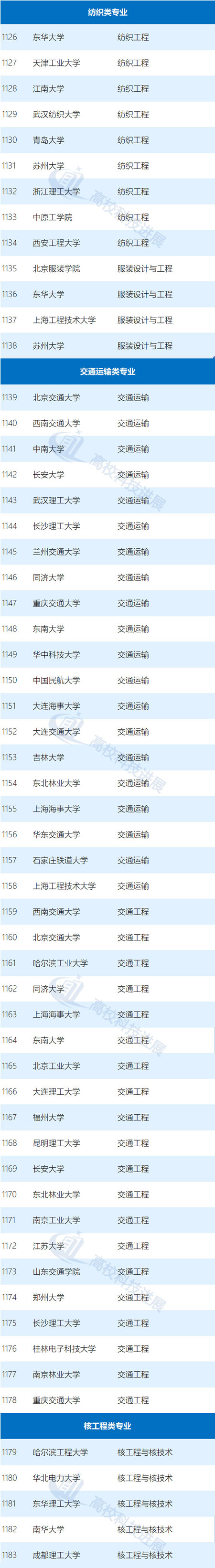 国家经济发展需要的传统学科专业:土木工程(102所)、机械设计制造及其自动化(81所)、化学工程与工艺(67所)、测控技术与仪器(57所)、安全工程(40所)、机械工程(35所)、测绘工程(34所)、通信工程(31所)等;