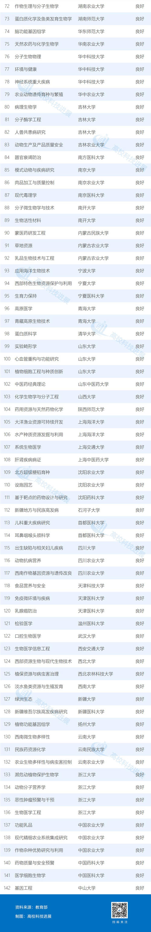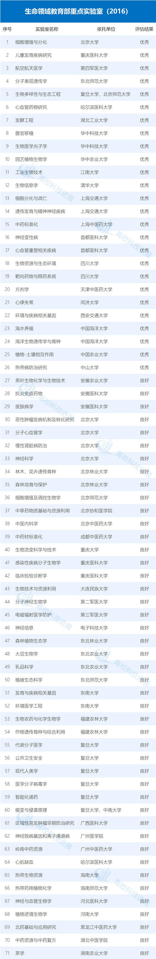据了解,教育部科技司于2016年组织实施了教育部重点实验室(生命领域)五年定期评估。在生命领域156个参评实验室中,细胞增殖与分化教育部重点实验室(北京大学)等26个实验室评估结果为优秀;茶叶生物化学与生物技术教育部重点实验室(安徽农业大学)等116个实验室评估结果为良好。
