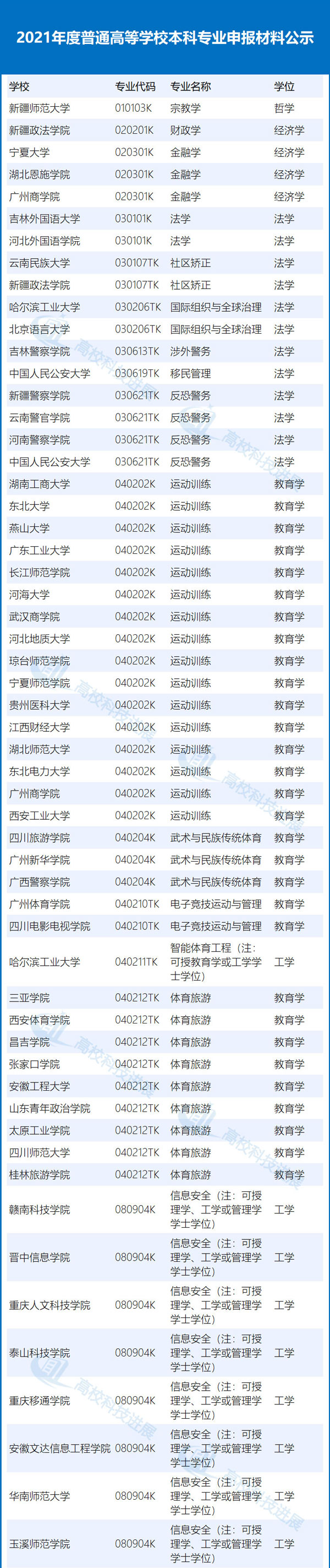 8月9日,教育部网站发布《2021年度普通高等学校本科专业申报材料公示》。