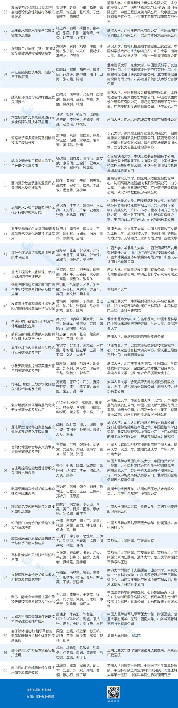 中国科学技术大学、山西大学、中国石油大学(华东)、东华大学和西北工业大学等15所高校分别获得2项,厦门大学、南京大学、吉林大学、华东理工大学、大连理工大学等40所高校各获得1项。