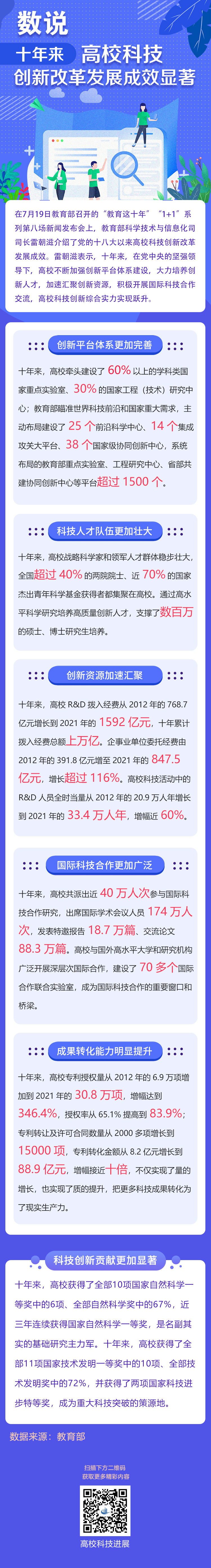 在7月19日教育部召开的“教育这十年”“1+1”系列第八场新闻发布会上,教育部科学技术与信息化司司长雷朝滋介绍了党的十八大以来高校科技创新改革发展成效。