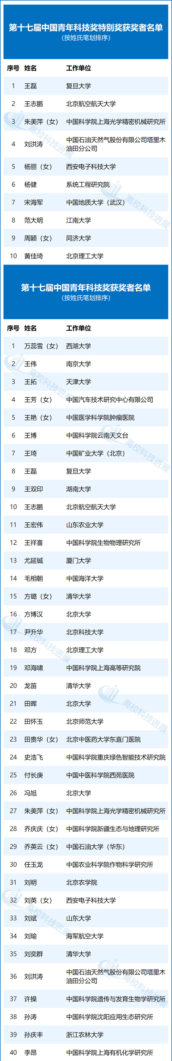 附:第十七届中国青年科技奖名单