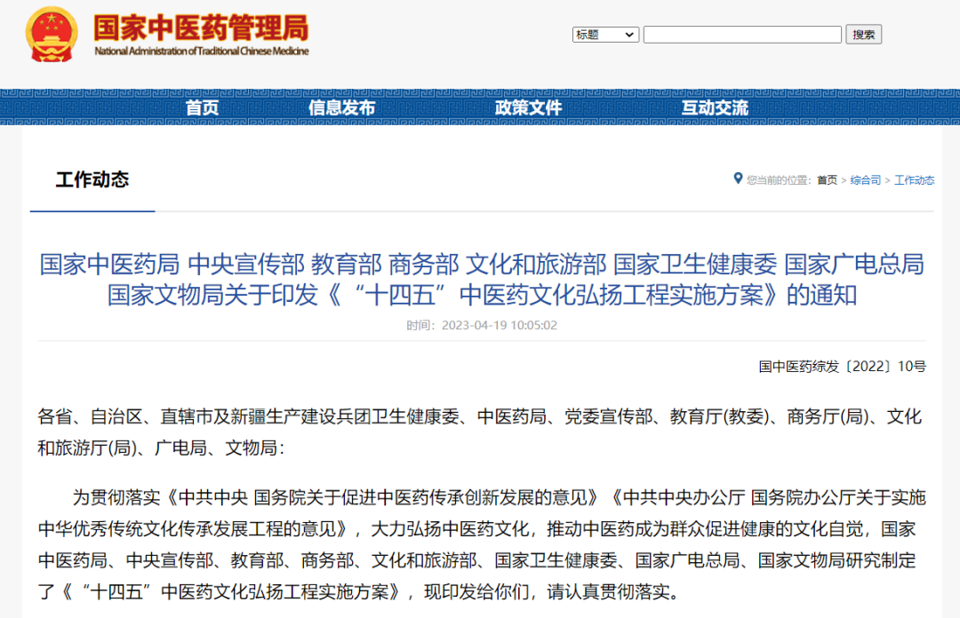 国家中医药局网站截图
