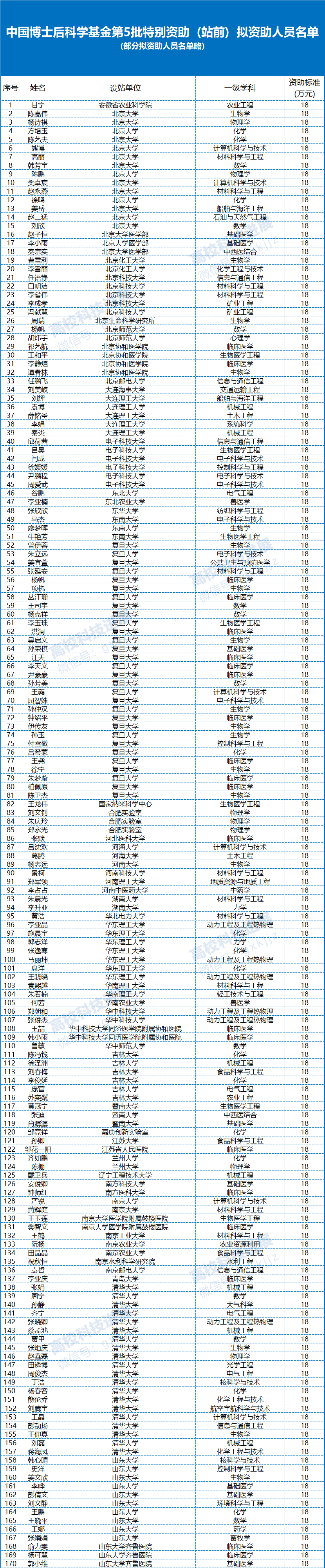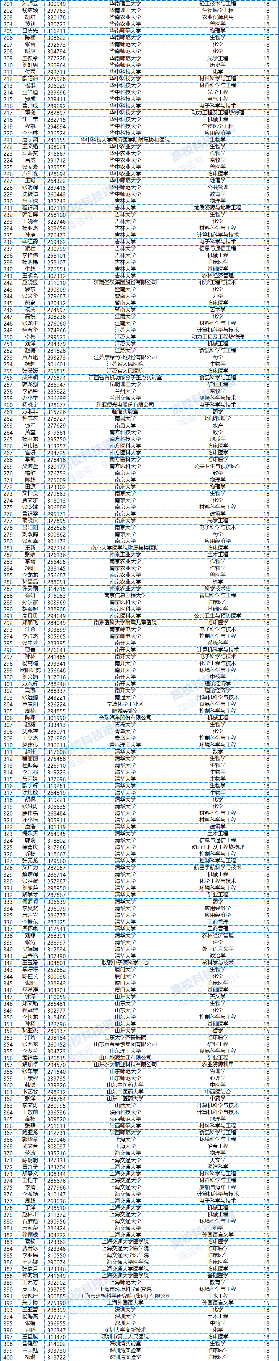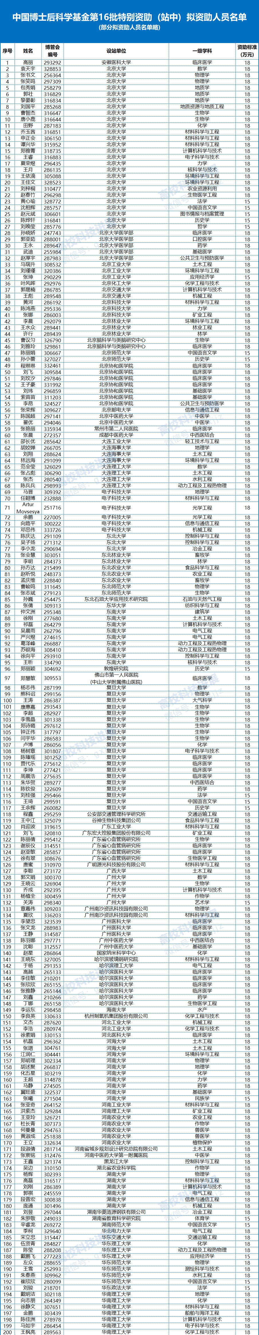 附:中国博士后科学基金第16批特别资助(站中)拟资助人员名单(部分拟资助人员名单略)