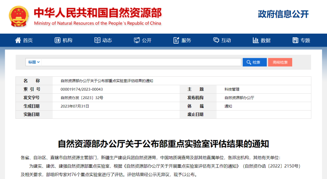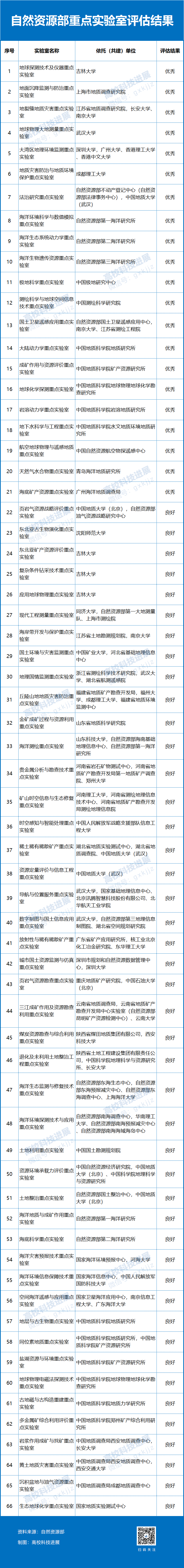 日前,自然资源部印发通知,公布自然资源部重点实验室评估结果。