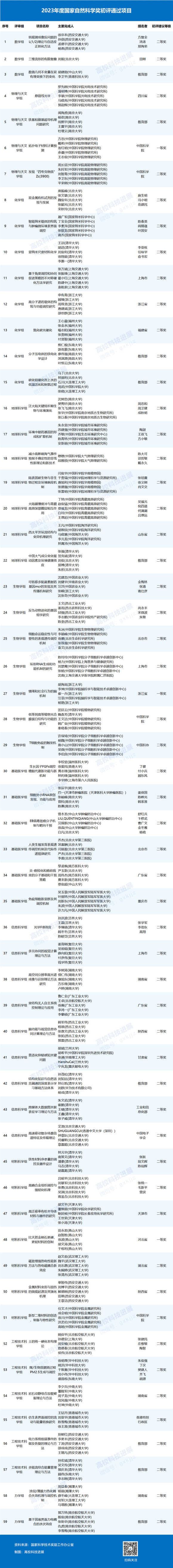 国家自然科学奖项目中,浙江大学、燕山大学各有1项初评建议等级为一等奖;国家技术发明奖项目中,湖南大学、清华大学、中国矿业大学(北京)各有1项初评建议等级为一等奖;国家科学技术进步奖项目中,清华大学、上海交通大学、四川大学、浙江工业大学、吉林农业大学、西安电子科技大学及浙江工业大学各有1项初评建议等级为一等奖。