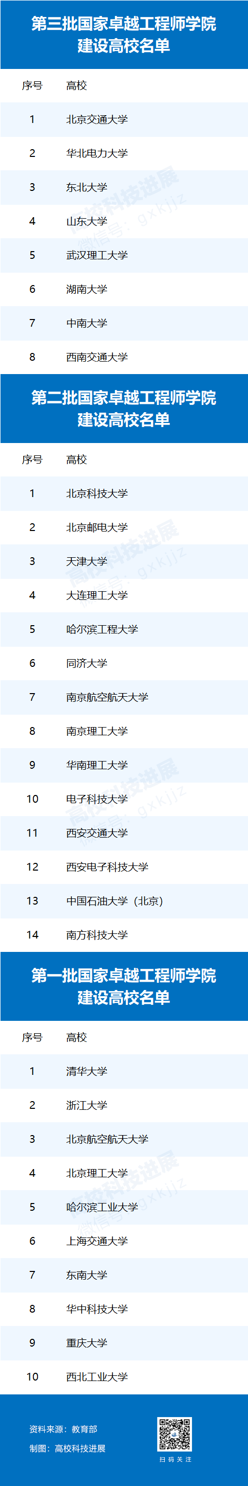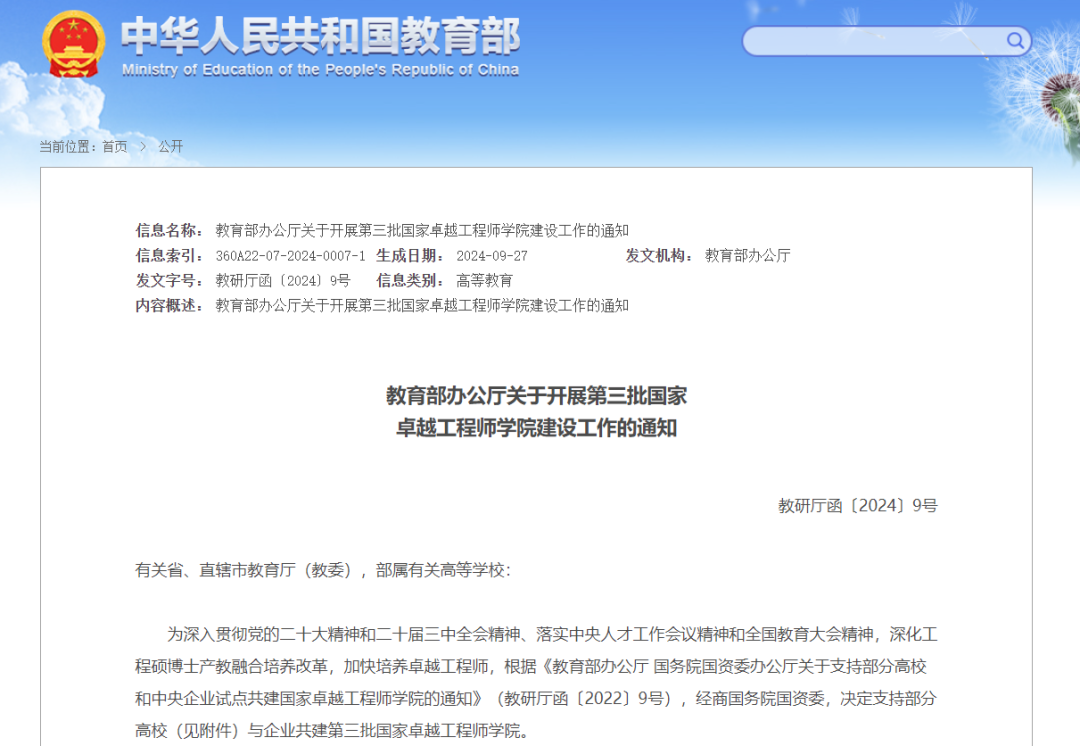 教育部此前公布了两批国家卓越工程师学院建设高校名单,首批10所高校入选,第二批14所高校入选,再加上第三批入选的8所高校,全国获批的国家卓越工程师学院建设高校已有32所。