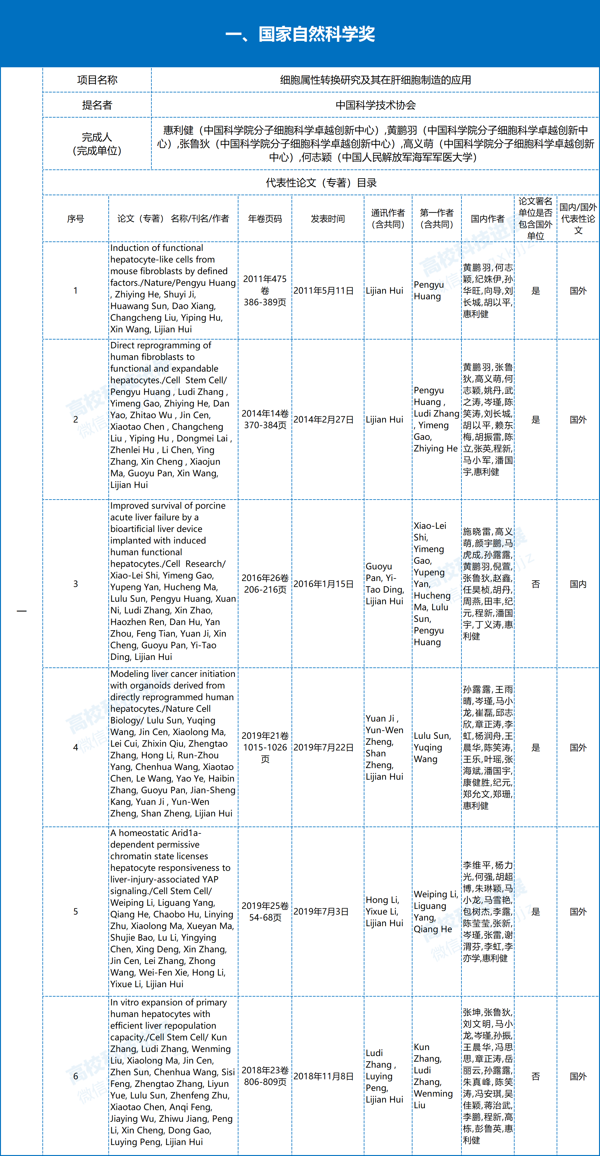 中国科协2025年度国家科学技术奖拟提名项目: