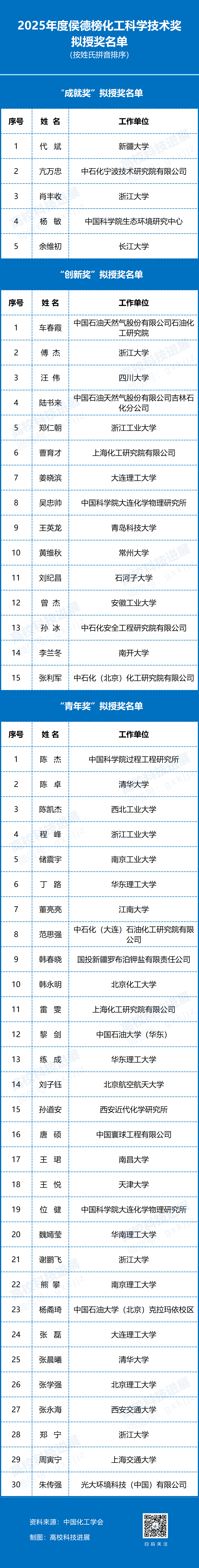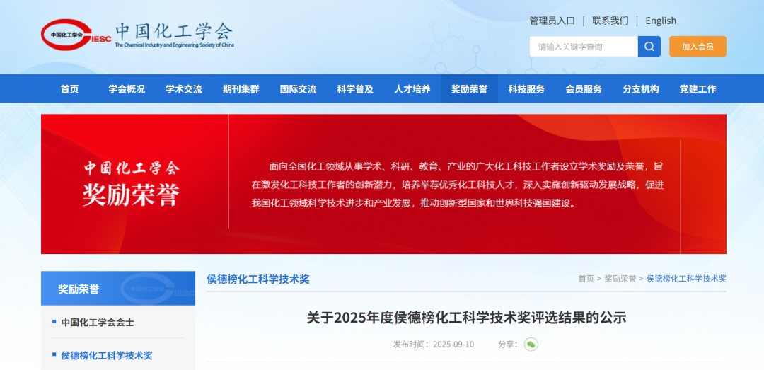 高校34人!2025年度侯德榜化工科学技术奖评选结果的公示