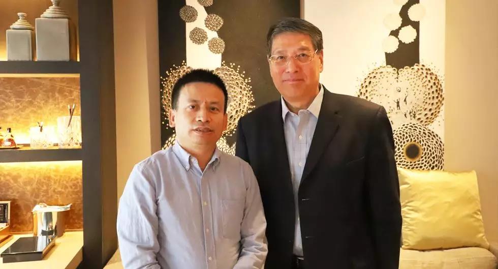 上海纽约大学校长俞立中(右)、中国教育在线总编辑陈志文(左) 中国教育在线/摄