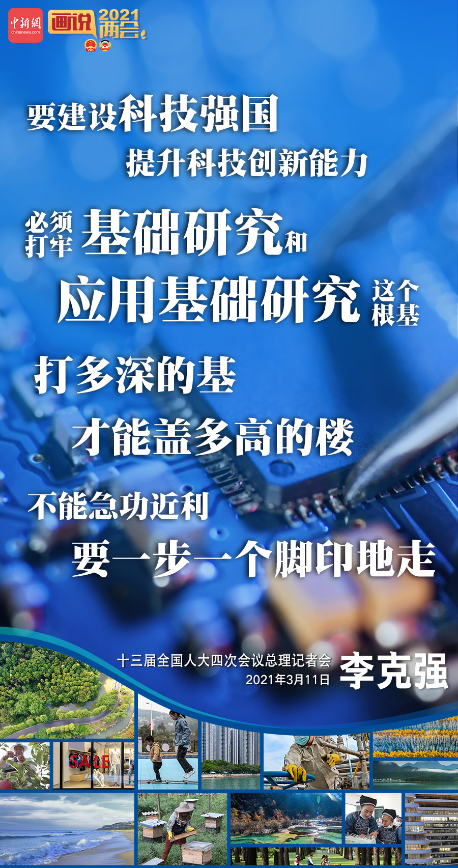 李克强:多年来,我国在科技创新领域有一些重大突破。在应用创新领域发展得也很快,但是在基础研究领域的确存在着不足。要建设科技强国,提升科技创新能力,必须打牢基础研究和应用基础研究这个根基。打多深的基才能盖多高的楼,不能急功近利,要一步一个脚印地走。