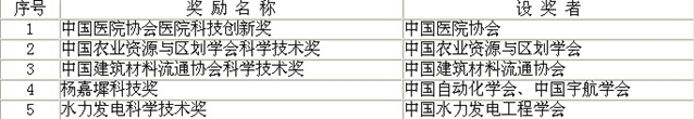 根据《社会力量设立科学技术奖管理办法》(科学技术部第10号令)的有关规定,科学技术部准予“中国医院协会医院科技创新奖”、“中国农业资源与区划学会科学技术奖”、“中国建筑材料流通协会科学技术奖”、“杨嘉墀科技奖”、“水力发电科学技术奖”5项社会力量设立科学技术奖登记。
