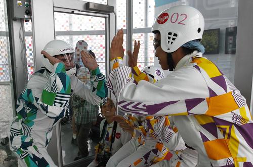 当日,三位幸运游客走进拉脱维亚馆的风洞体验区,在风洞飞行员的指导和帮助下,感受了凌空飞行的神奇魅力。