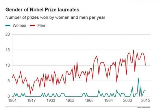 在科学和人道主义事业领域内,几乎一切都在改变,但有一件事却没有发生变化:诺贝尔奖得主绝大多数仍为男性。尽管男性诺贝尔奖得主在科学领域占据绝对优势,但随着获奖得主多样性的提高、清理储备奖项,未来诺贝尔将得主男女比例相当可能最终会成为现实。