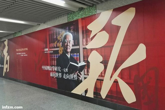 ▲2017年9月26日,中国北京,由人大师生策划、设计并拍摄,旨在庆祝学校80周年校庆的巨幅照片,在地铁4号线人民大学站亮相。(视觉中国/图)