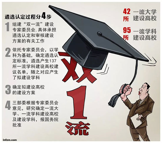 以动态调整、不搞终身制为改革亮点的“双一流”建设方案自2015年8月启动。2017年1月,经国务院同意,三部委印发《统筹推进世界一流大学和一流学科建设实施办法(暂行)》,“双一流”建设进入实施操作阶段。