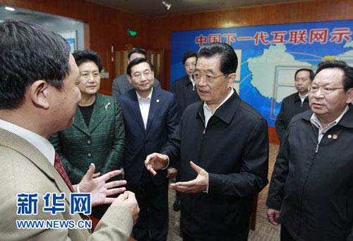 信息网络工程研究中心承担着研发我国下一代互联网的重大任务。在这个中心,胡锦涛饶有兴致地听介绍、看演示,详细询问两代互联网衔接、下一代互联网技术标准和安全性能等情况。总书记说,我们已经进入了网络时代,下一代互联网具有比这一代互联网更大、更快、更安全的特点。国家把研发下一代互联网这个光荣而艰巨的任务交给清华大学来牵头,你们责任重大。他希望科研人员把自主创新与借鉴国外结合起来,奋力攻克关键核心技术,为我国互联网发展作出新的更大贡献。