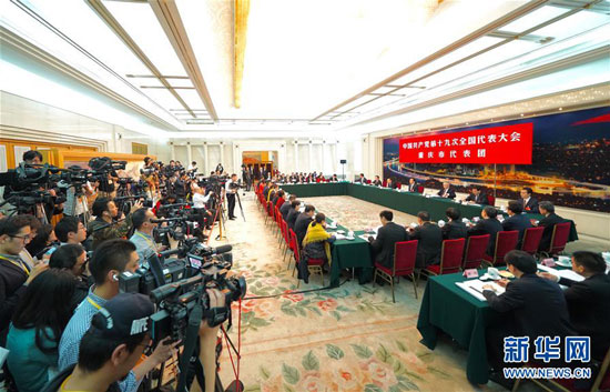2017年10月19日,党的十九大重庆市代表团讨论向中外记者开放。新华社记者 陈建力 摄