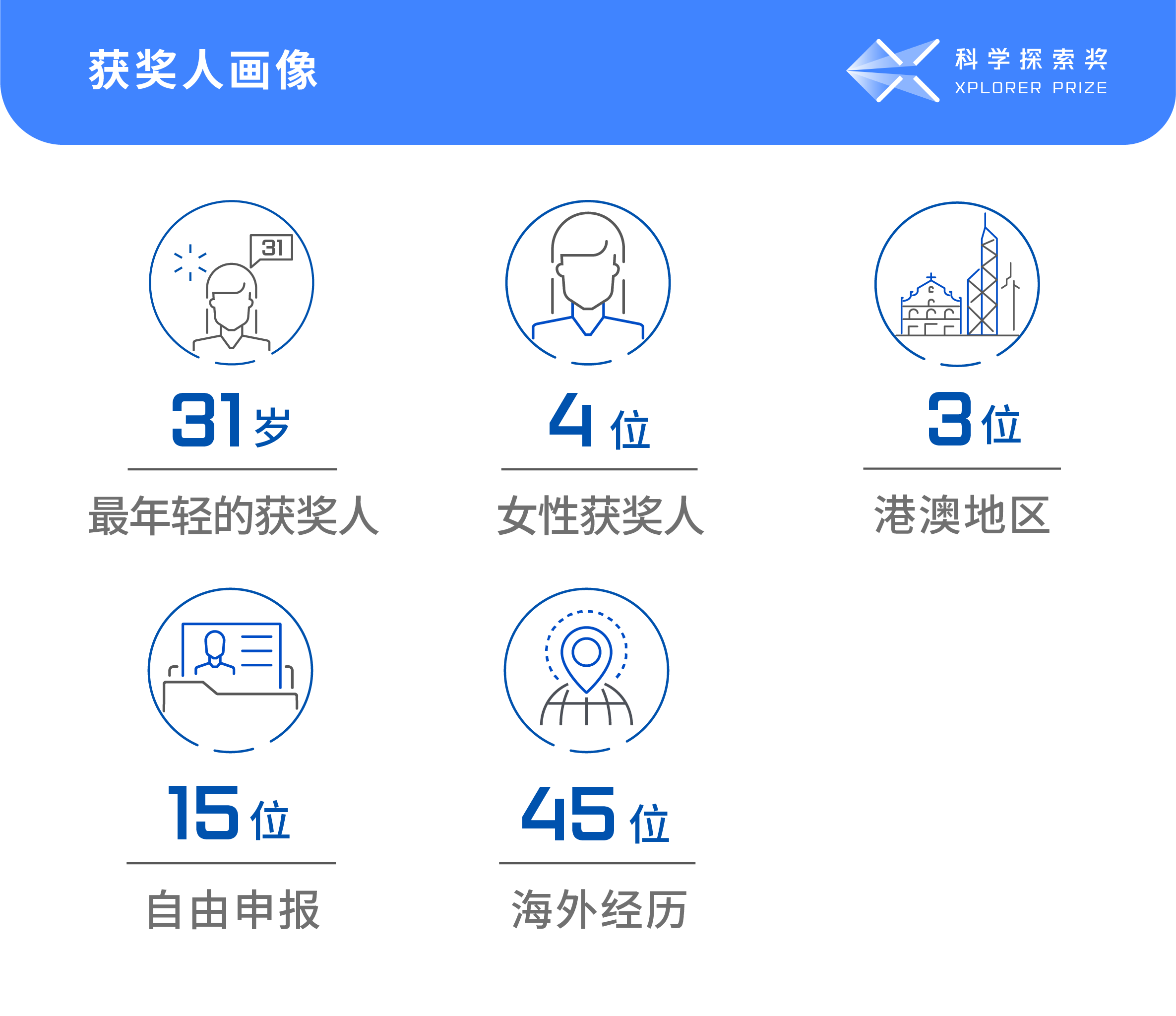 “科学探索奖”于2018年设立,由杨振宁、饶毅、施一公、潘建伟、谢晓亮等14位知名科学家与腾讯基金会发起人马化腾共同发起。奖项覆盖基础科学和前沿技术10个领域,四年来共评选出200位获奖人。作为科学家主导的公益奖项,奖项秉持“面向未来、奖励潜力、鼓励探索”的宗旨,鼓励青年科技人才探索科学“无人区”,探索社会支持基础研究人才持续稳定的投入机制。